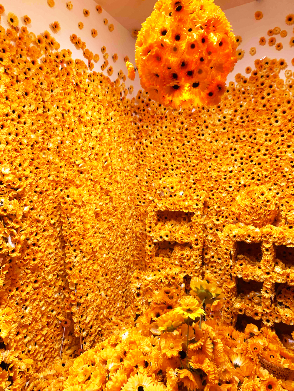 こちらの写真にあるガーベラのインスタレーションアートは来場者が一輪ずつ部屋に飾る事で完成するものでした。
