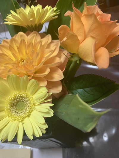 これは早めにお渡しせねばと描いたみなさんへ連絡したら、受け取りにいらした生徒さんが「教室でのレッスンが楽しかった」と仰って下さり、綺麗なお花を頂きました。