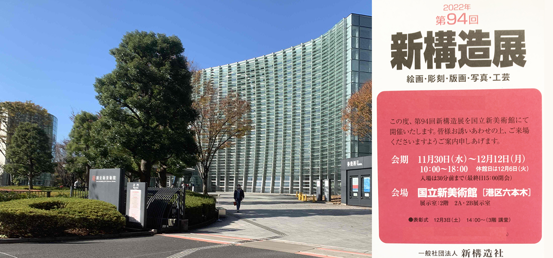 12月になり、すっかり寒くなりましたね。 昨日から六本木の国立新美術館で「第94回 新構造展」が始まりました! …